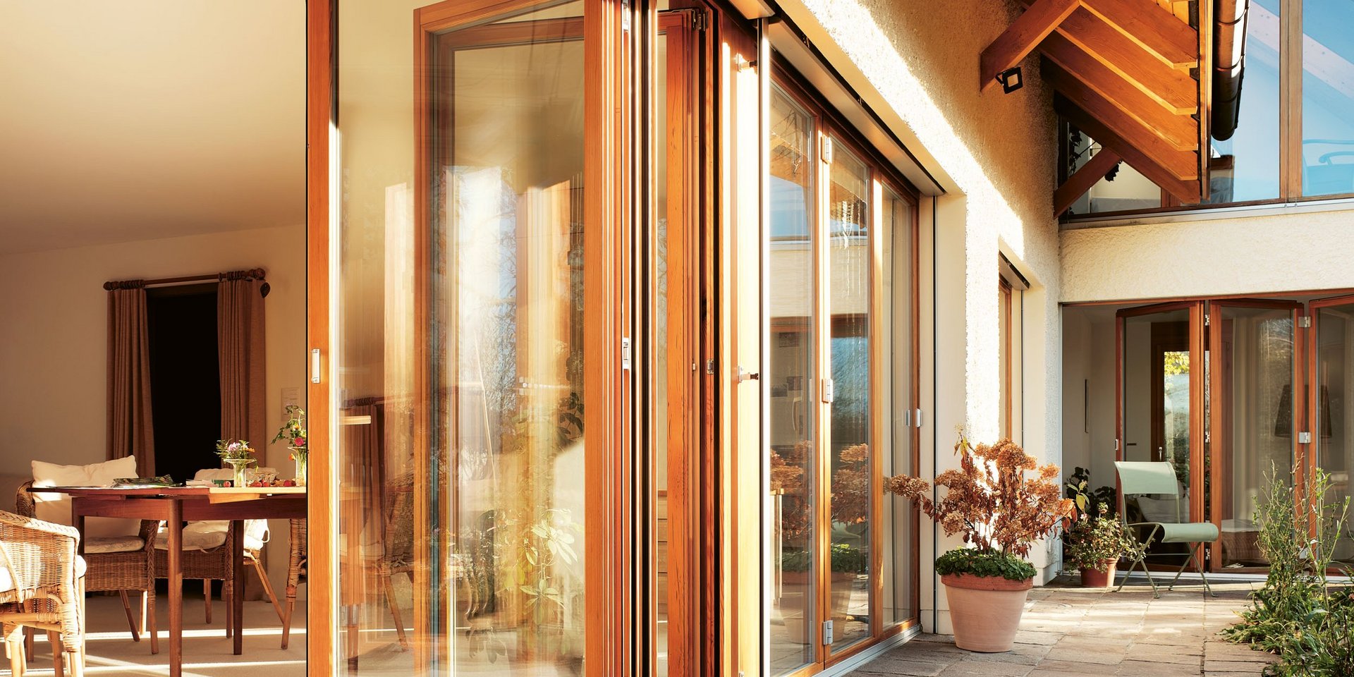 Entdecken Sie eine neue Dimension des Raumgefühls mit unseren Falt-Schiebe-Türen. Leicht und sicher verschieben Sie die Flügel und schaffen einen grosszügigen Durchgang ins Freie. Geniessen Sie die grenzenlose Bewegungsfreiheit.